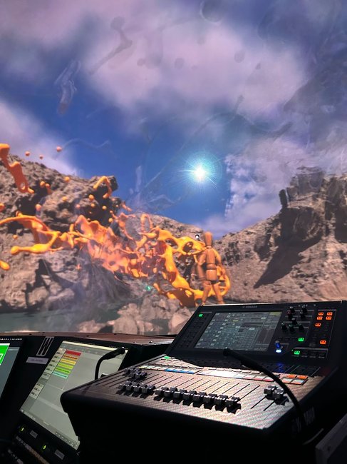 During the performance, VR headset and sound object transformations within Unreal Engine served as live event data. This set up dynamically controlled the positioning of audio sources within the soundfield, utilizing an ambisonic panner.